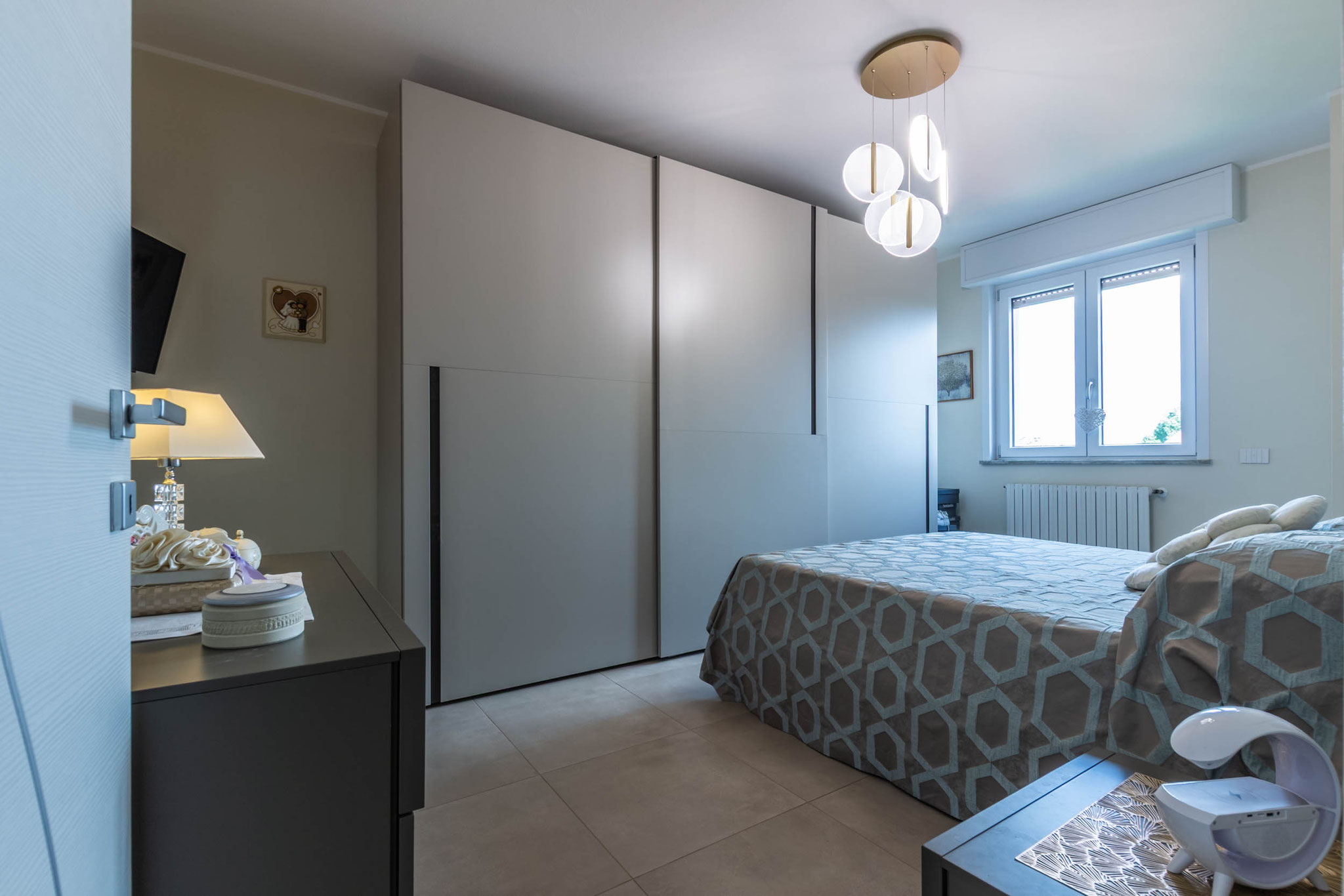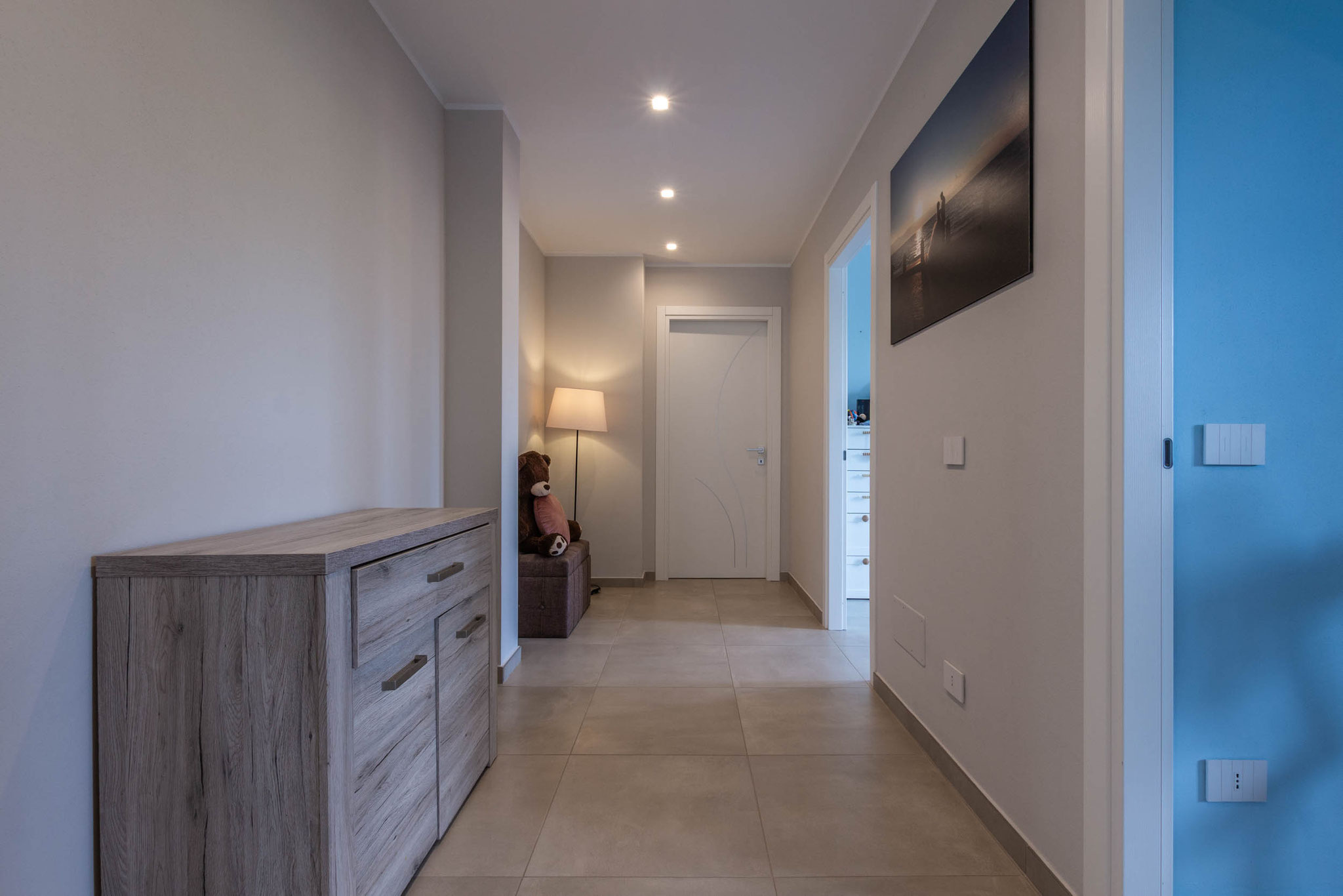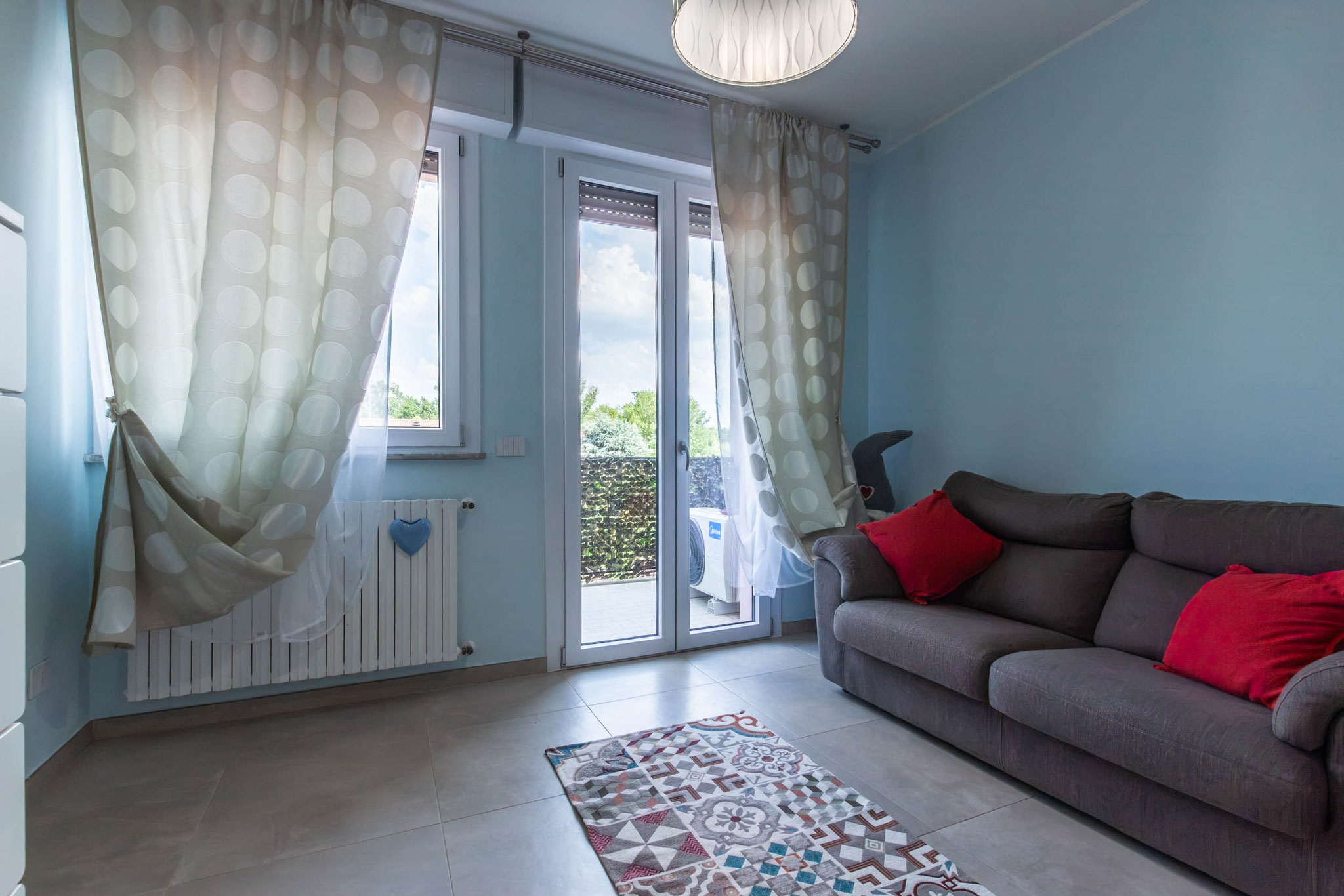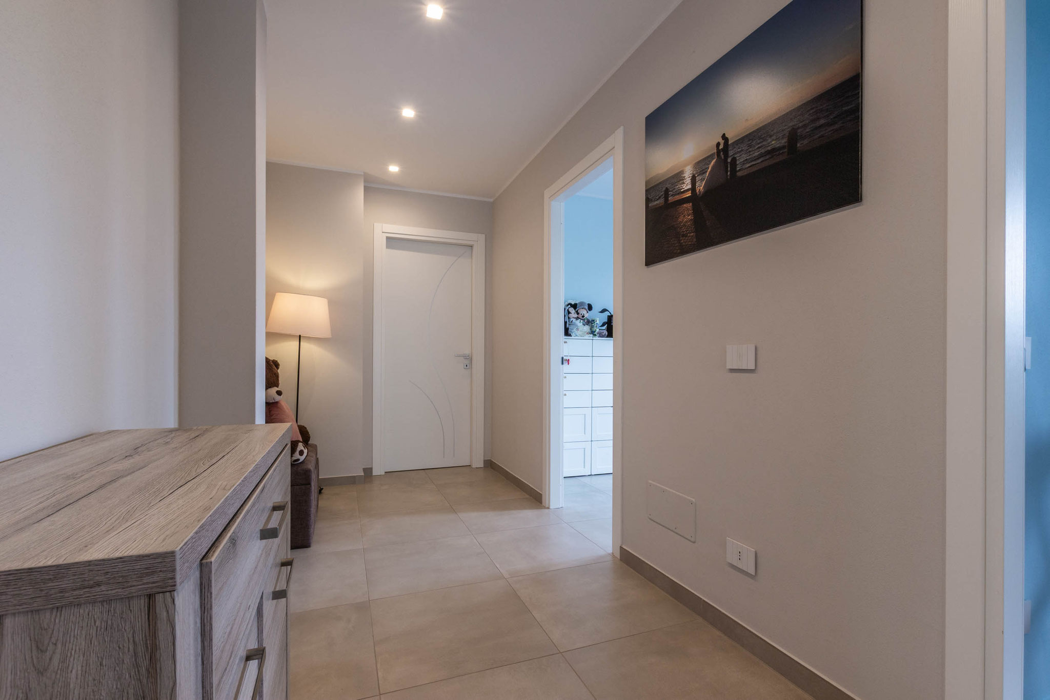 C'è un ampio soggiorno con cucina a vista, dove la luce è protagonista grazie alle vetrate ed ai toni chiari degli ambienti, il terrazzino, affacciato sulla campagna è perfetto per colazioni o serate con la vista sul verde. La zona notte comprende tre camere da letto, matrimoniale, camera doppia, e una singola. Ci sono due bagni, cantina ed un garage doppio.