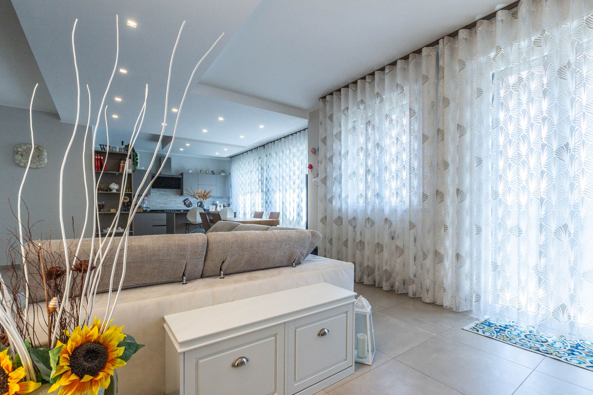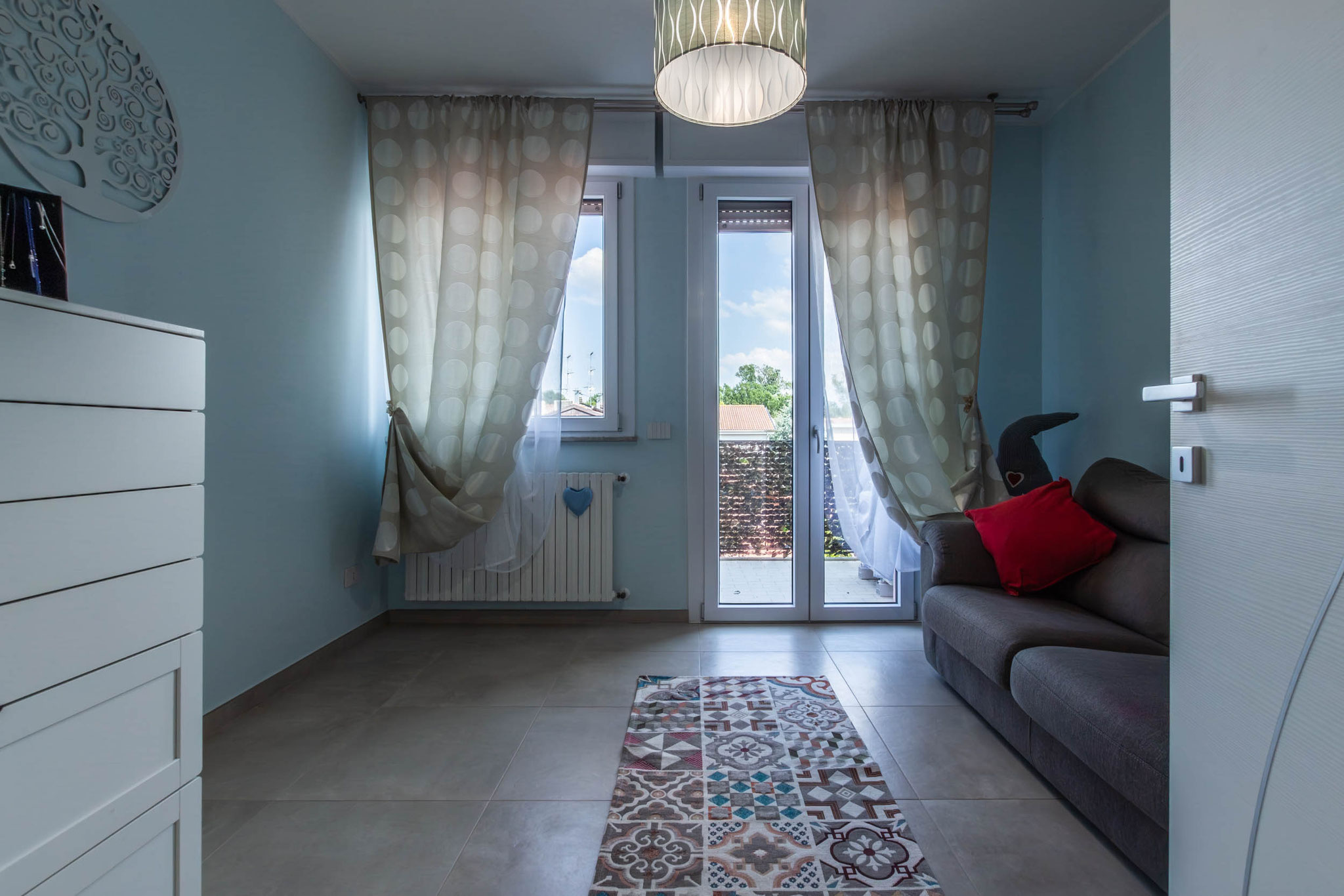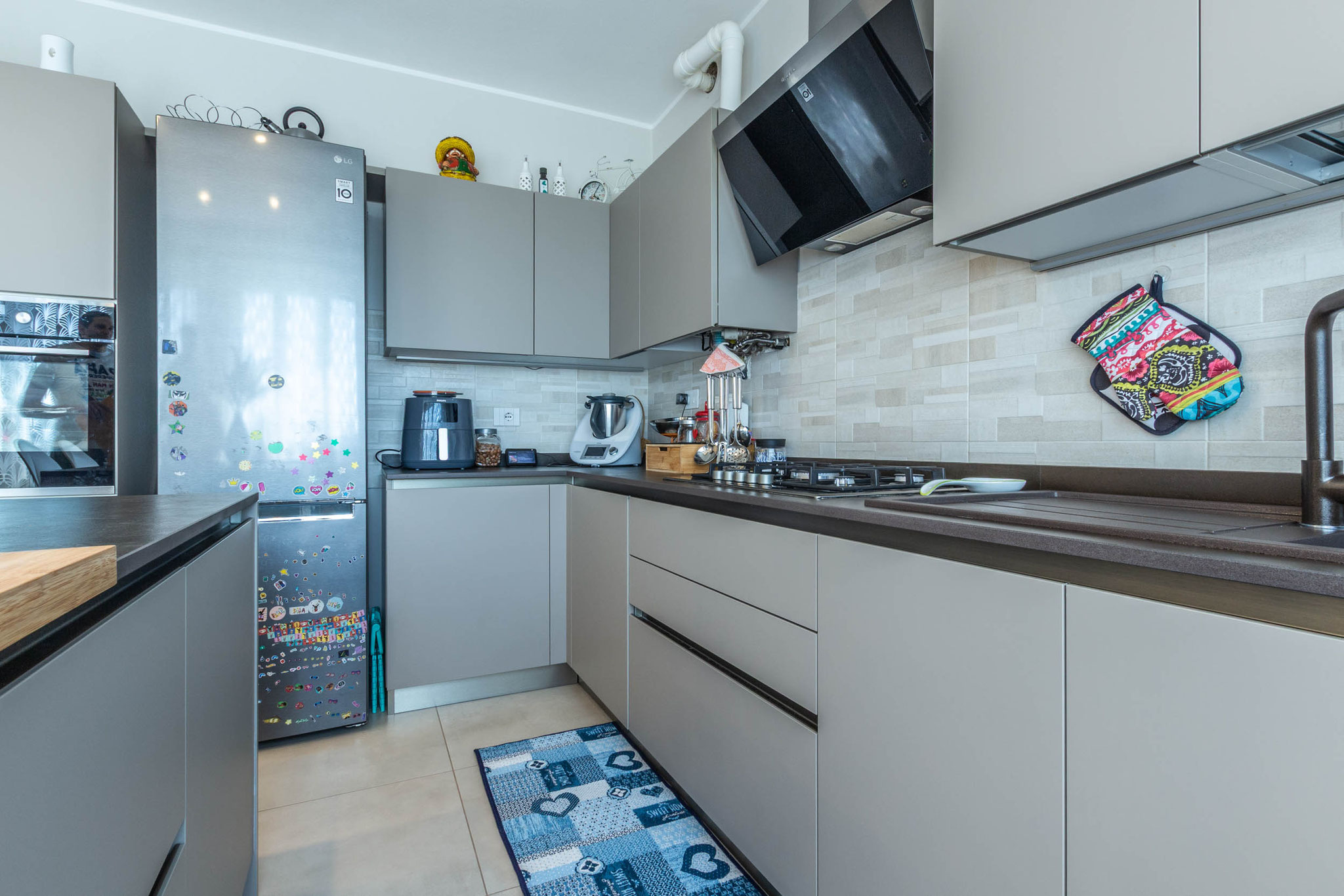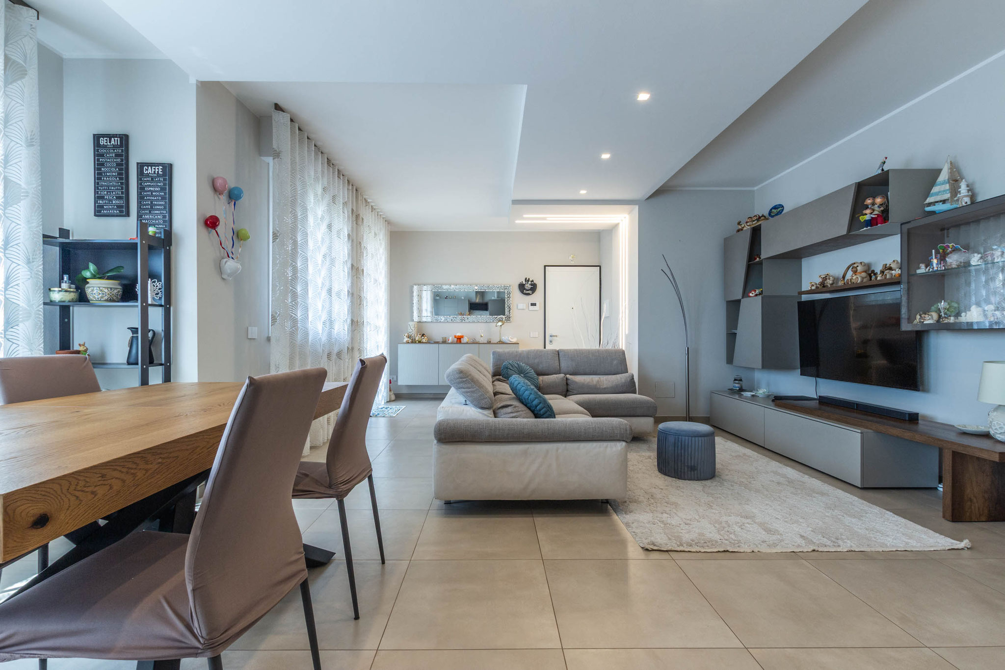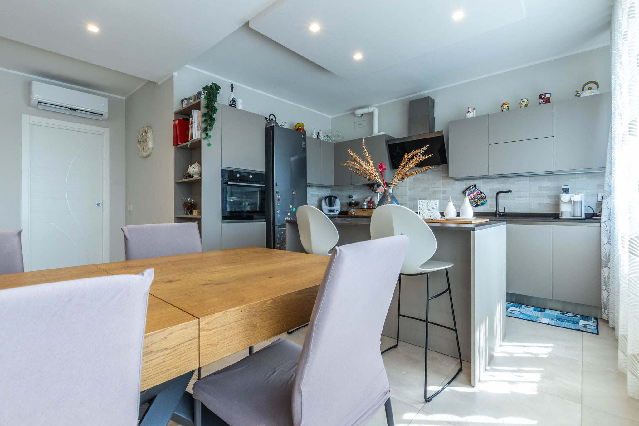C'è un ampio soggiorno con cucina a vista, dove la luce è protagonista grazie alle vetrate ed ai toni chiari degli ambienti, il terrazzino, affacciato sulla campagna è perfetto per colazioni o serate con la vista sul verde. La zona notte comprende tre camere da letto, matrimoniale, camera doppia, e una singola. Ci sono due bagni, cantina ed un garage doppio.