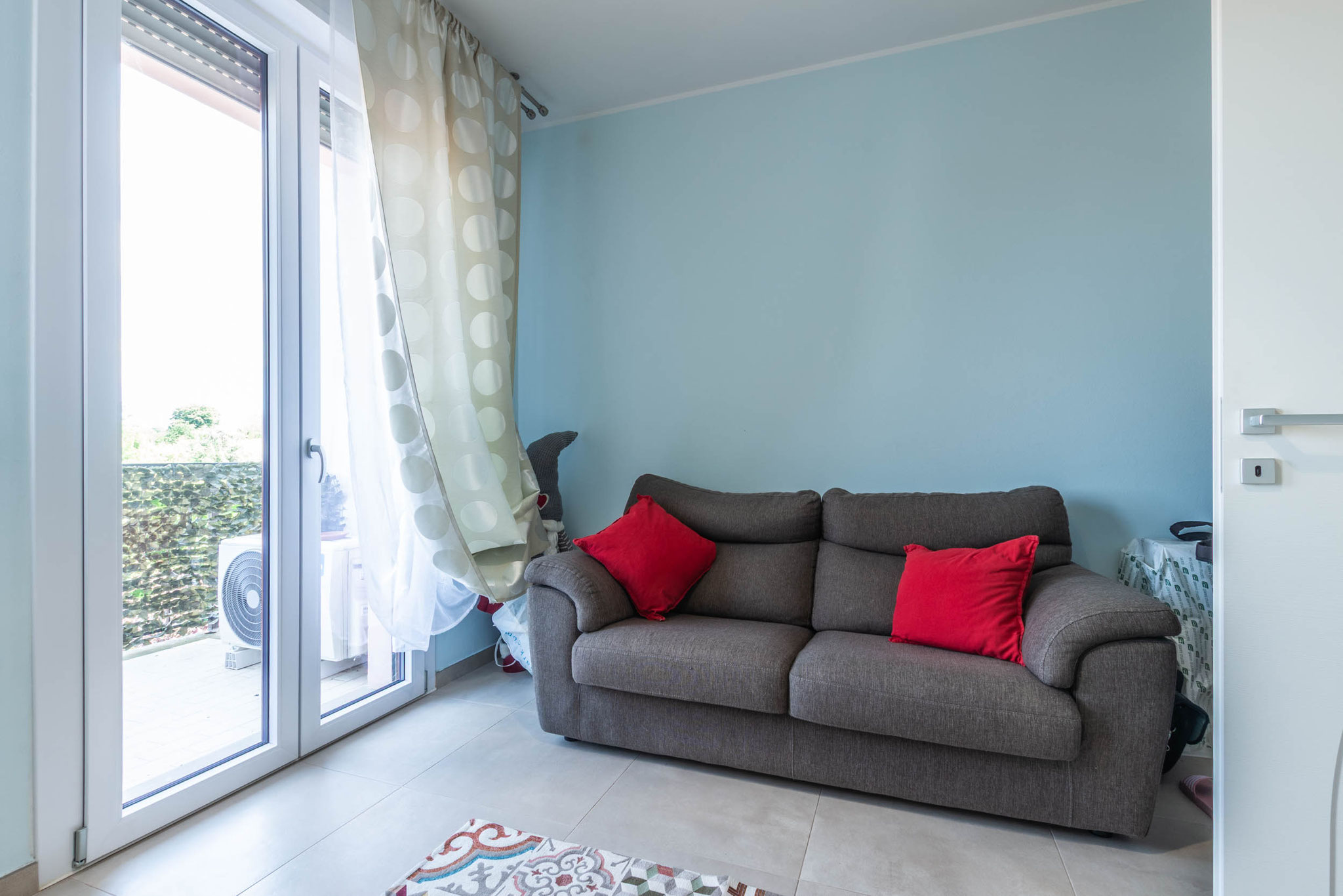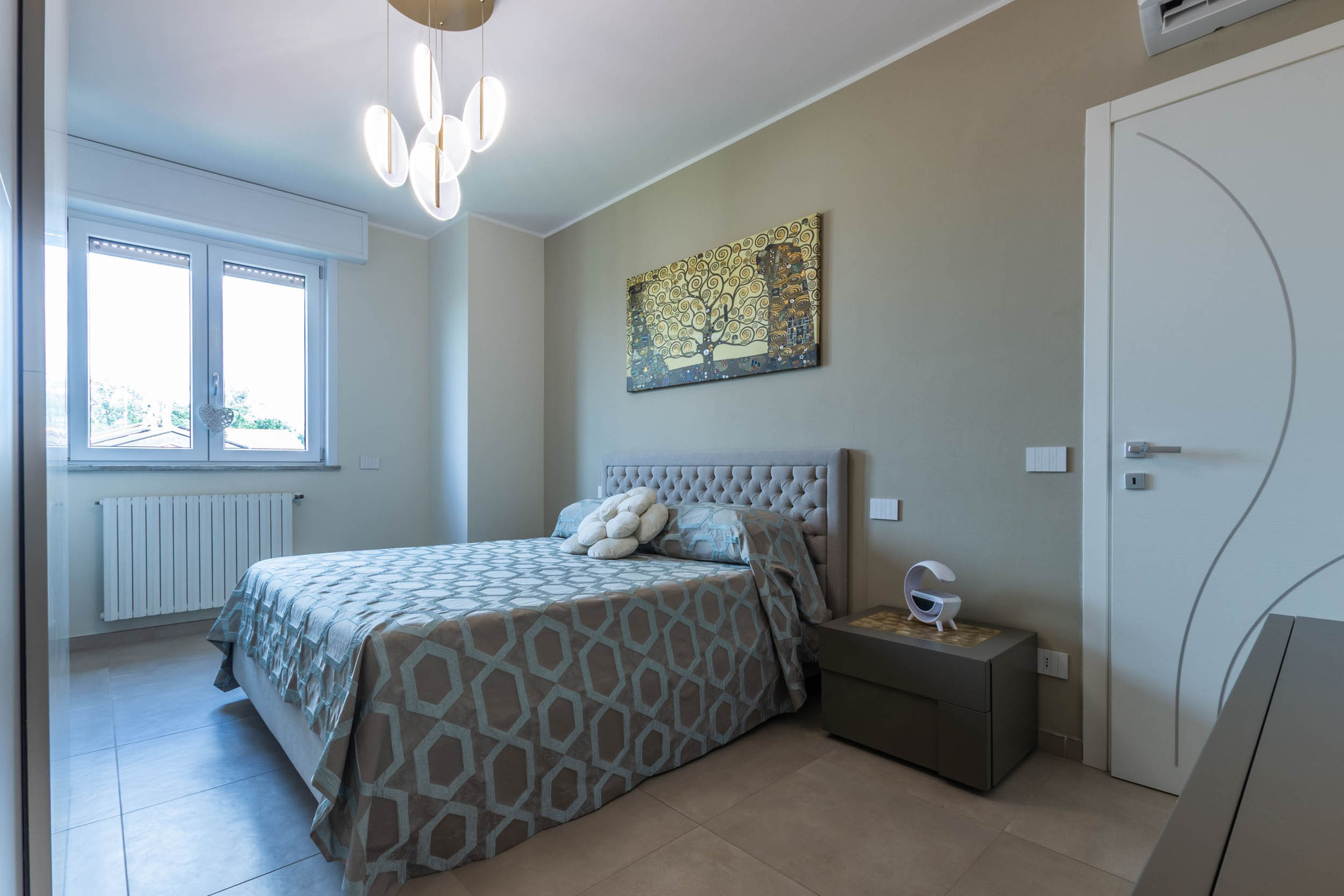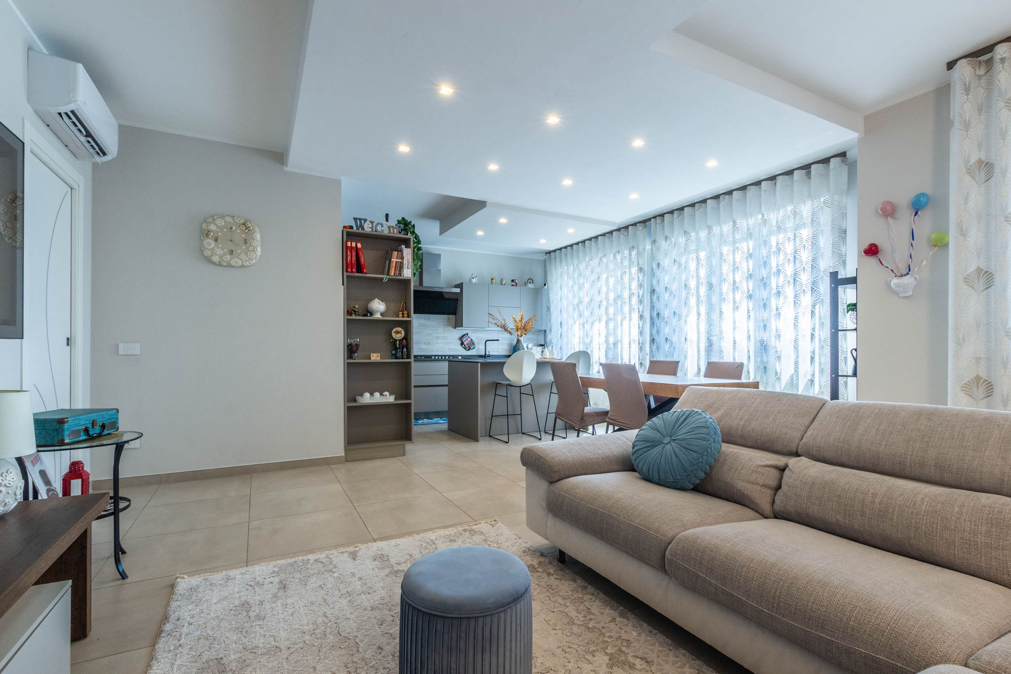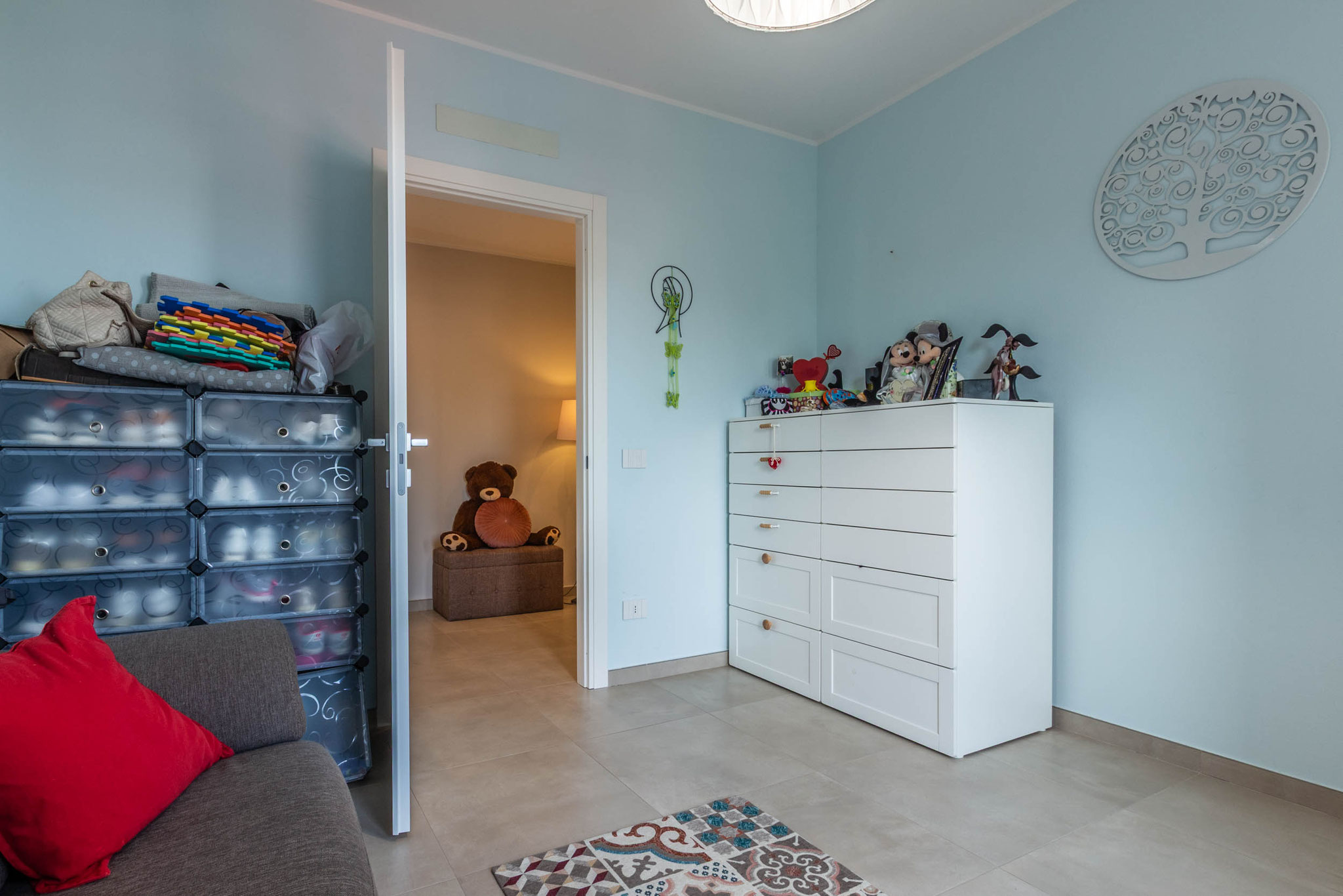 C'è un ampio soggiorno con cucina a vista, dove la luce è protagonista grazie alle vetrate ed ai toni chiari degli ambienti, il terrazzino, affacciato sulla campagna è perfetto per colazioni o serate con la vista sul verde. La zona notte comprende tre camere da letto, matrimoniale, camera doppia, e una singola. Ci sono due bagni, cantina ed un garage doppio.