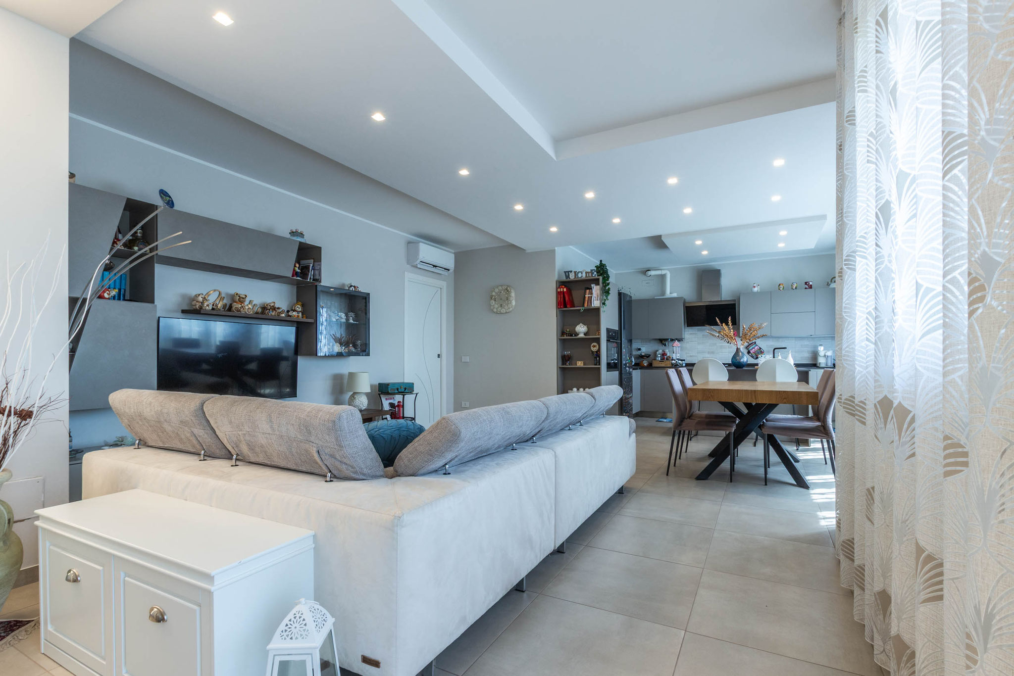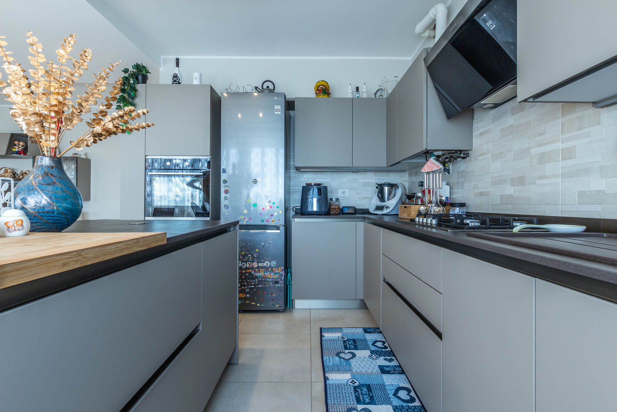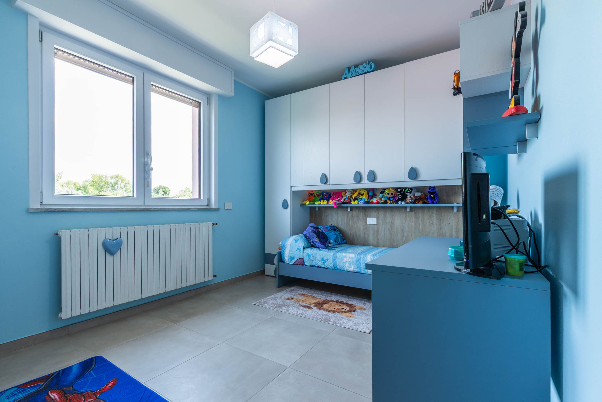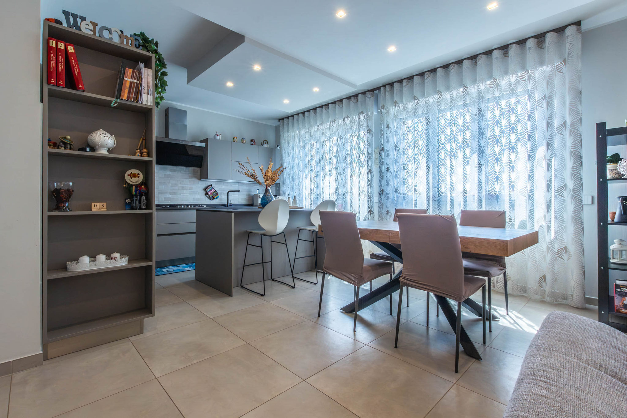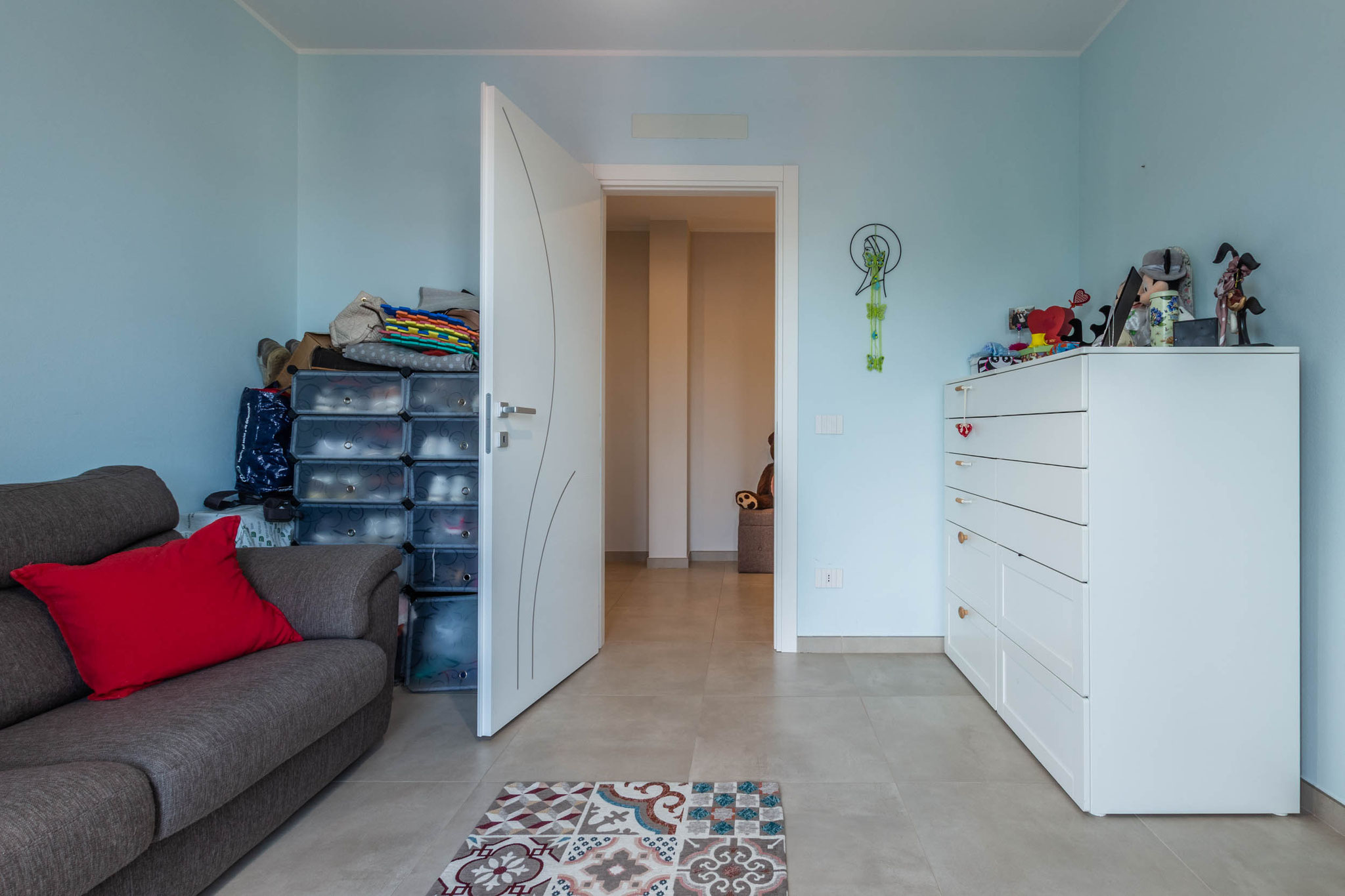 C'è un ampio soggiorno con cucina a vista, dove la luce è protagonista grazie alle vetrate ed ai toni chiari degli ambienti, il terrazzino, affacciato sulla campagna è perfetto per colazioni o serate con la vista sul verde. La zona notte comprende tre camere da letto, matrimoniale, camera doppia, e una singola. Ci sono due bagni, cantina ed un garage doppio.