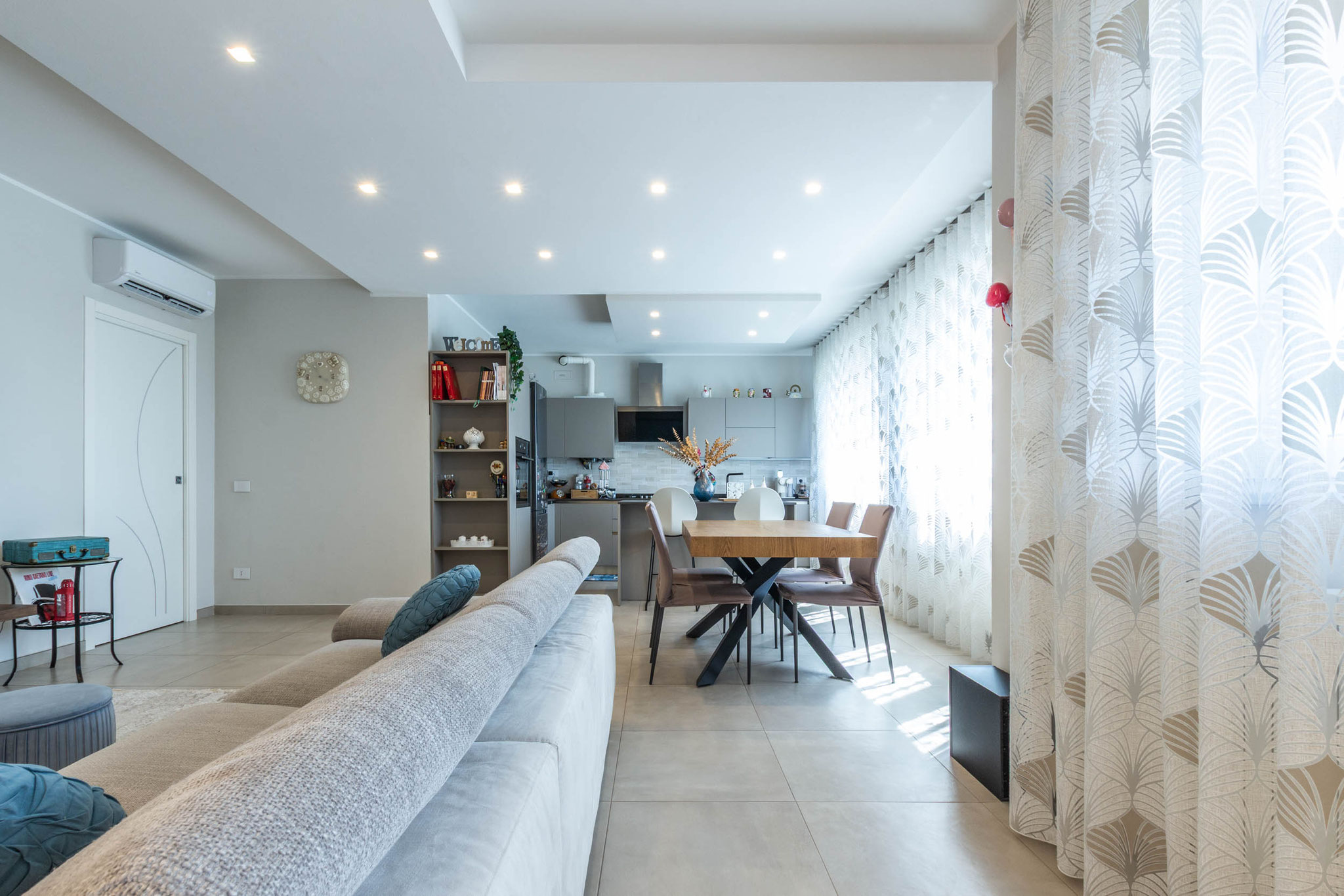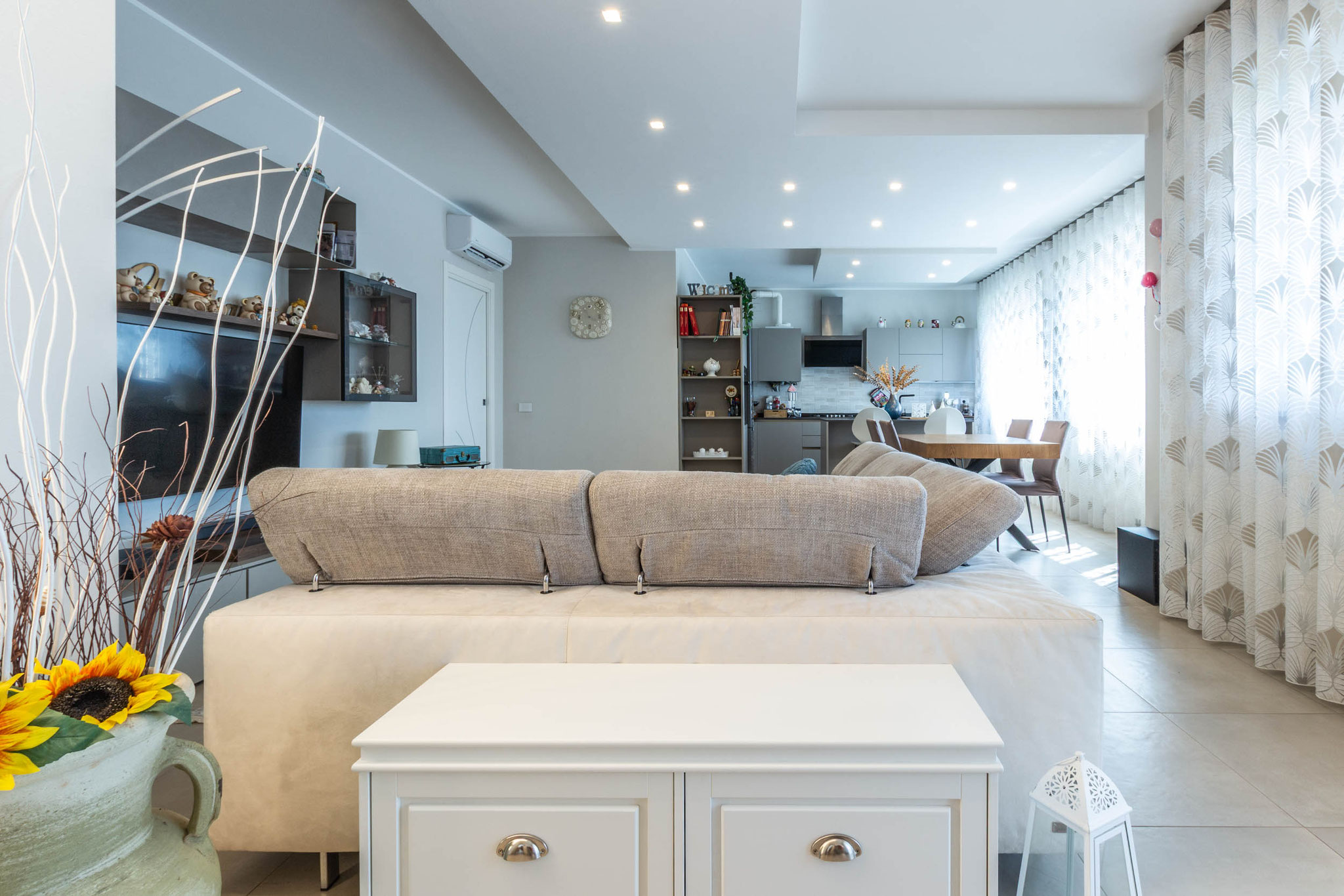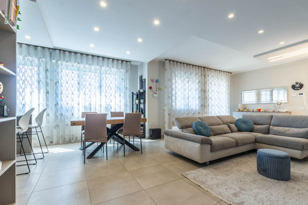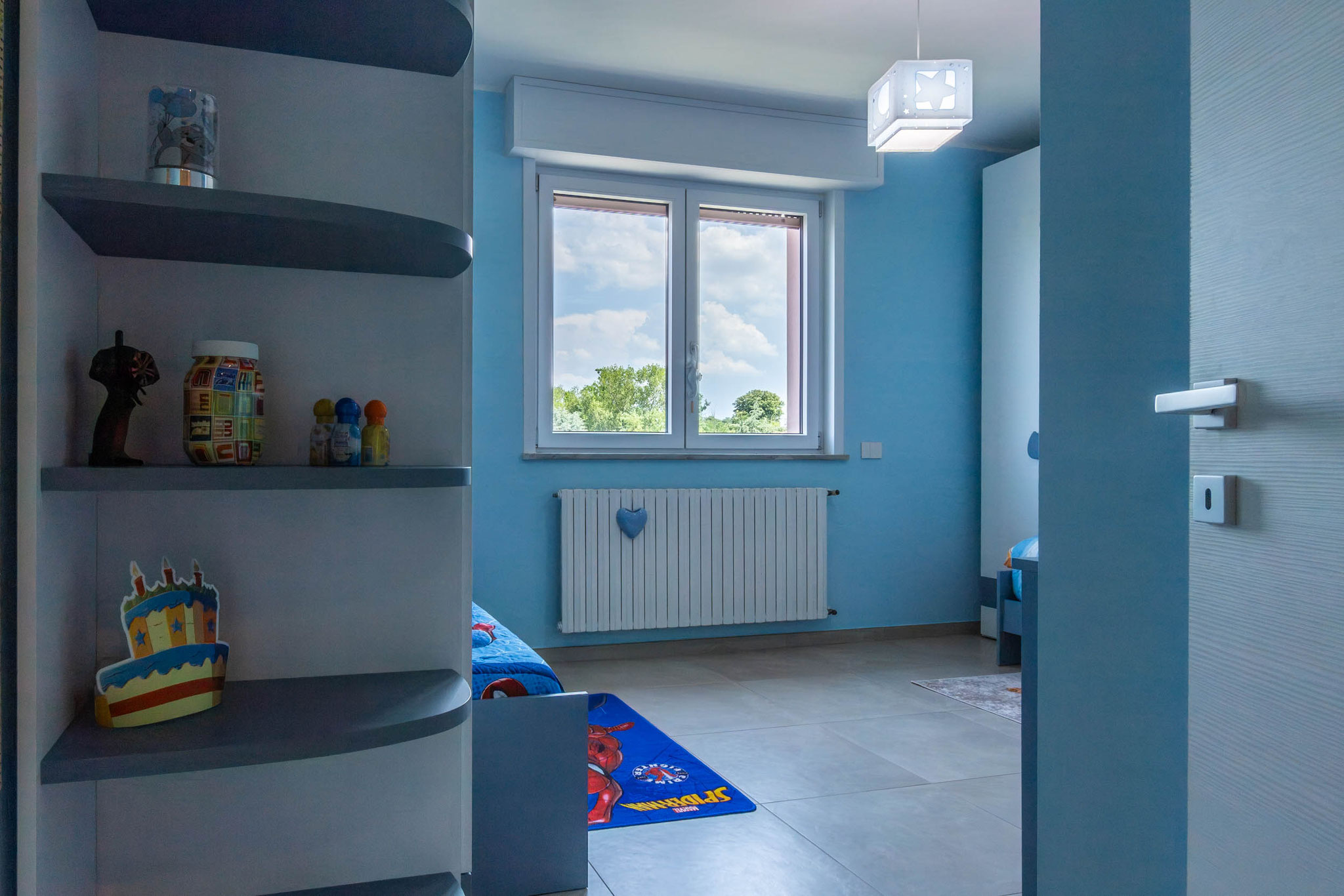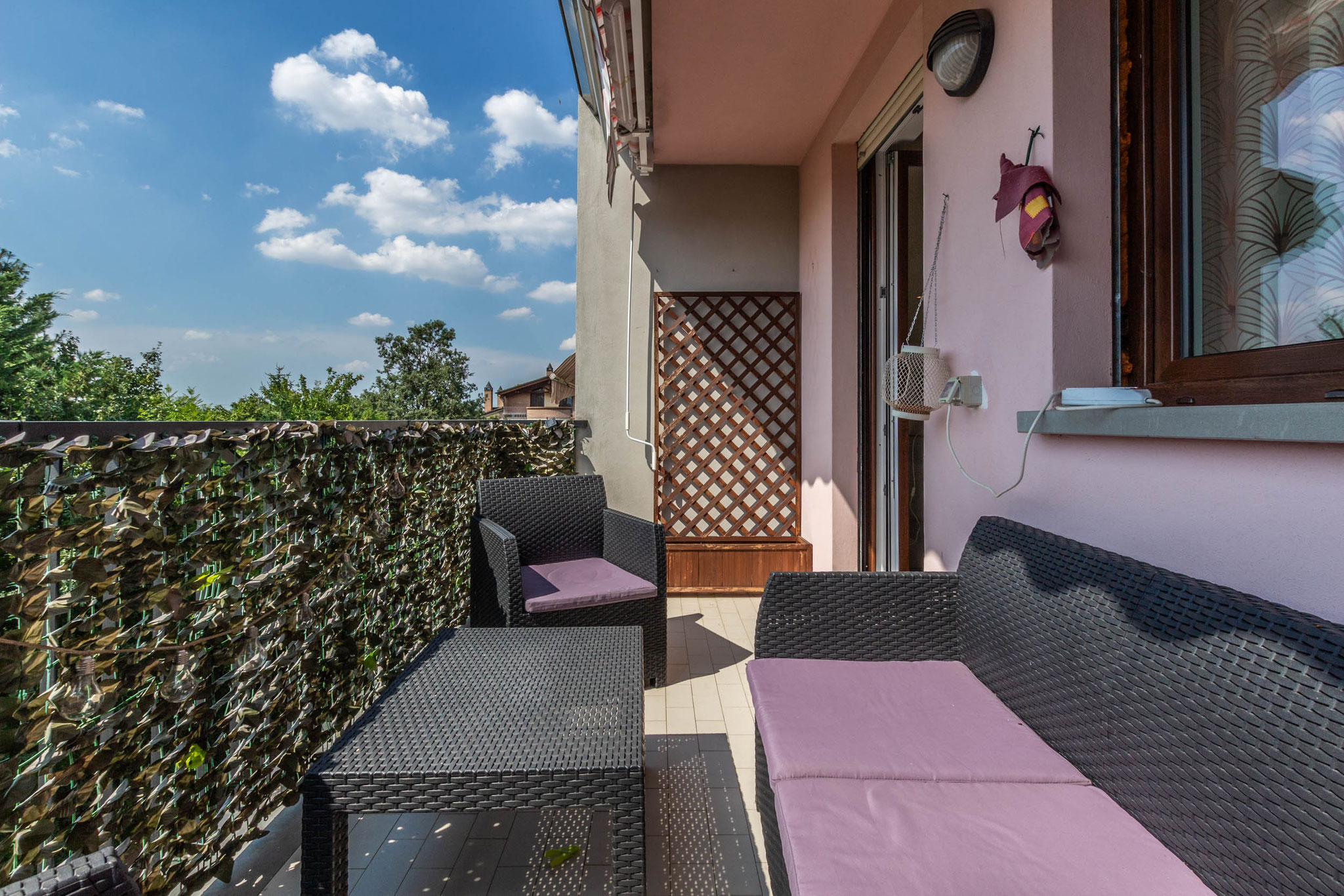 C'è un ampio soggiorno con cucina a vista, dove la luce è protagonista grazie alle vetrate ed ai toni chiari degli ambienti, il terrazzino, affacciato sulla campagna è perfetto per colazioni o serate con la vista sul verde. La zona notte comprende tre camere da letto, matrimoniale, camera doppia, e una singola. Ci sono due bagni, cantina ed un garage doppio.