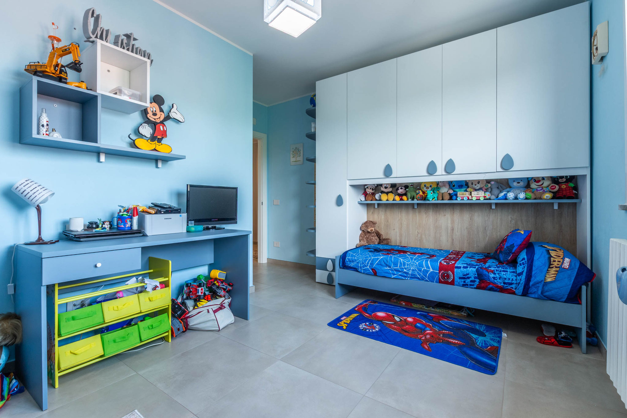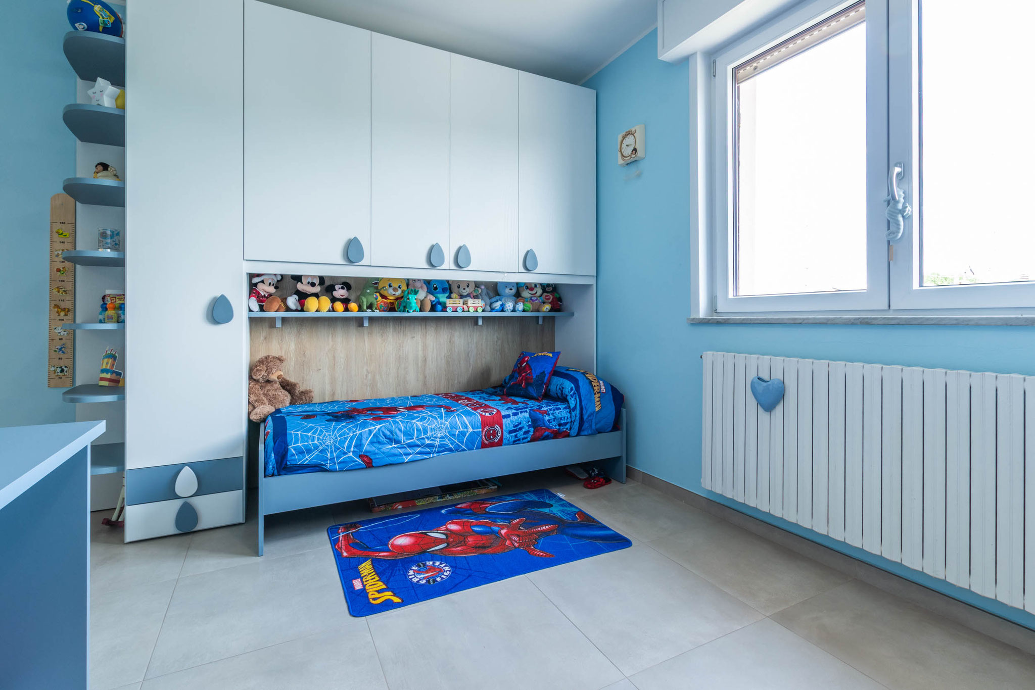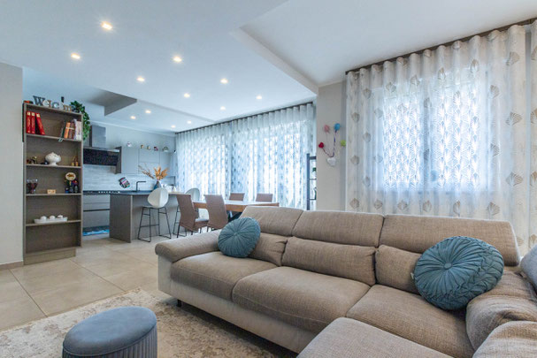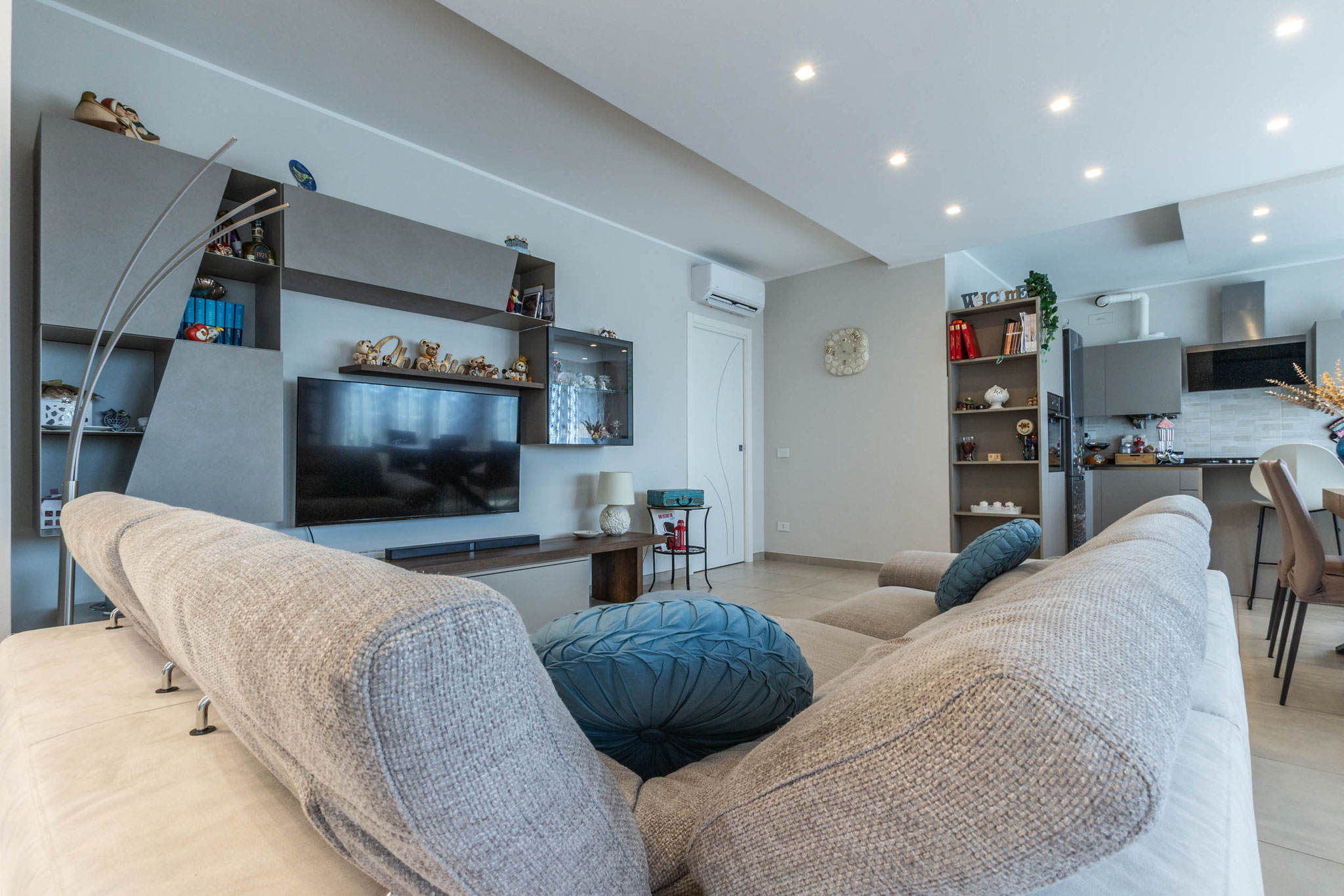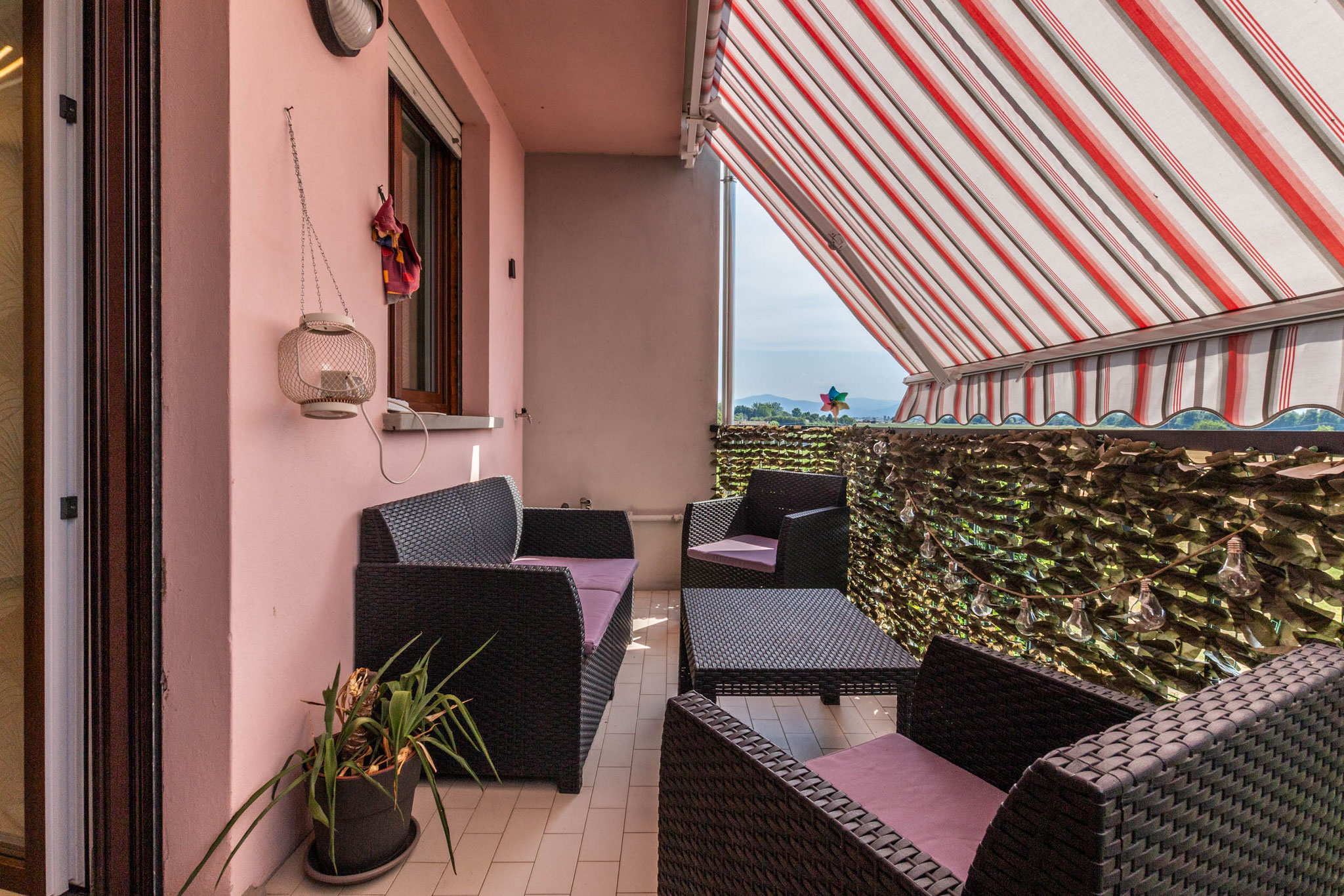 C'è un ampio soggiorno con cucina a vista, dove la luce è protagonista grazie alle vetrate ed ai toni chiari degli ambienti, il terrazzino, affacciato sulla campagna è perfetto per colazioni o serate con la vista sul verde. La zona notte comprende tre camere da letto, matrimoniale, camera doppia, e una singola. Ci sono due bagni, cantina ed un garage doppio.