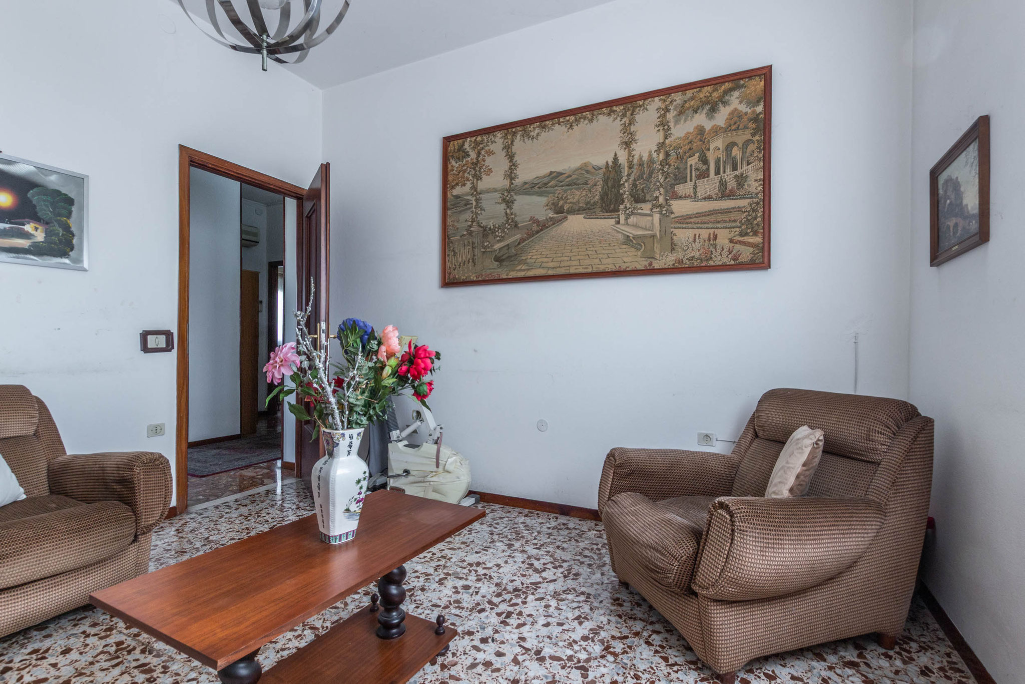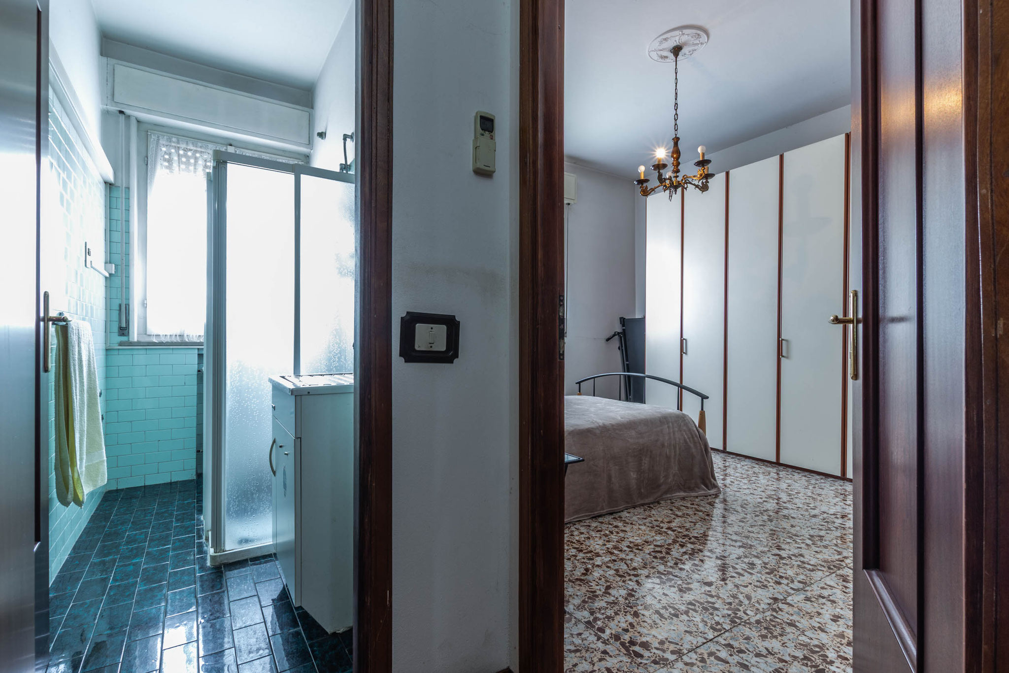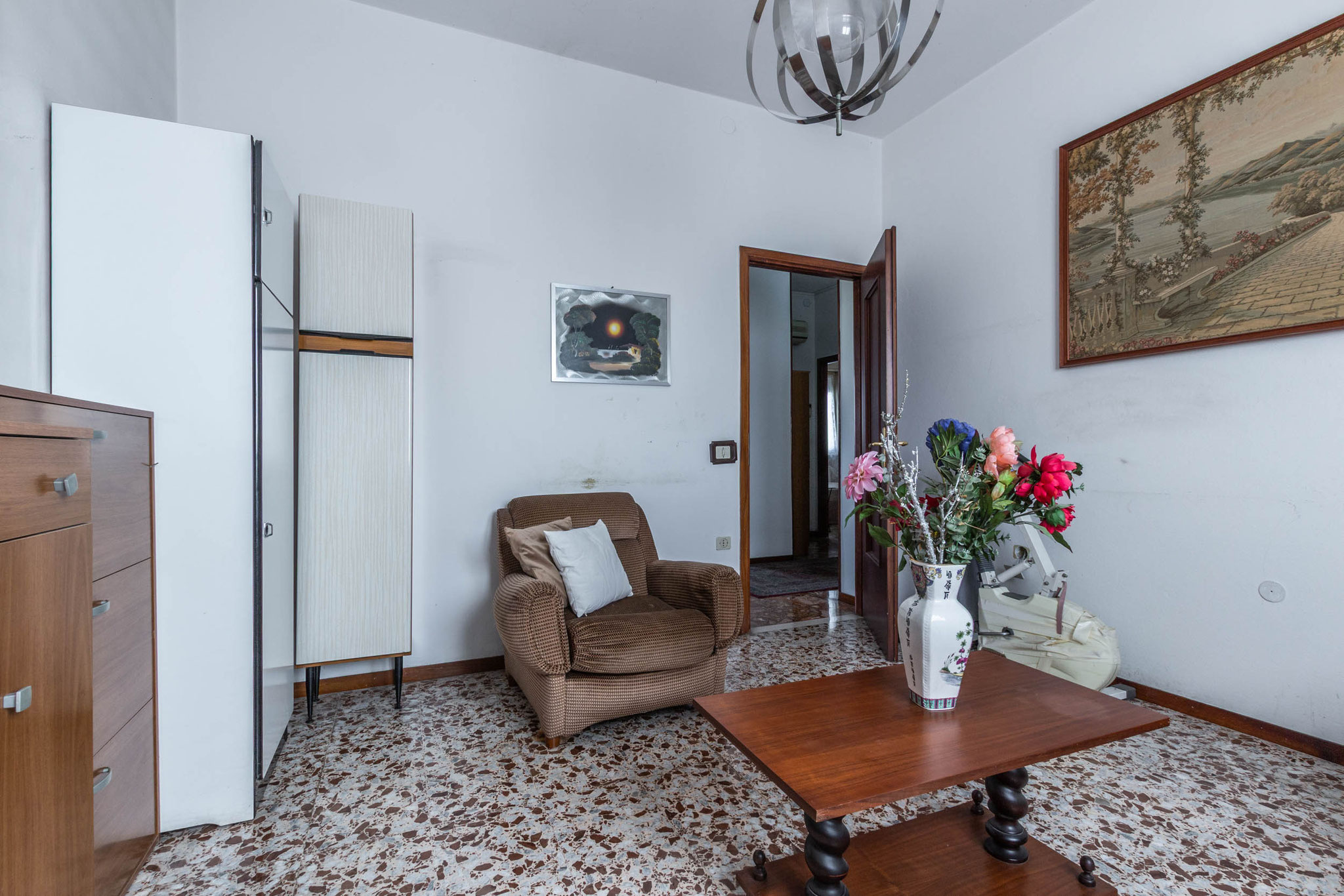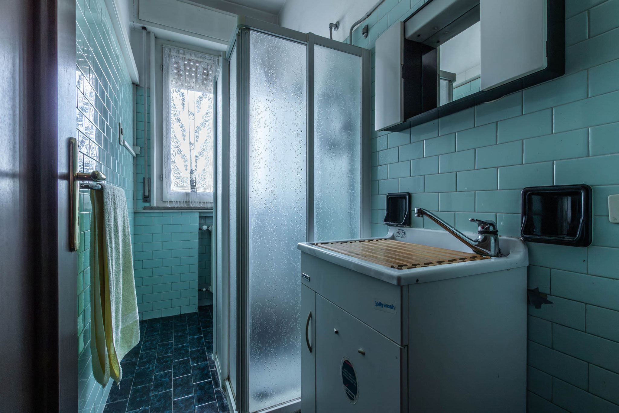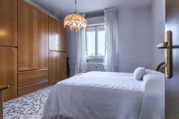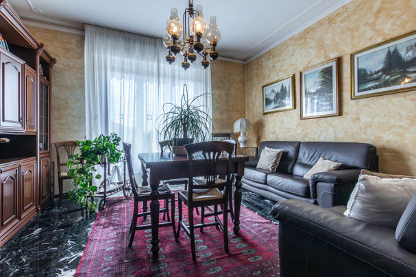 L'appartamento si trova in una palazzina in ordine, al secondo piano senza ascensore. Ha soggiorno con un bel balcone, cucina, tre camere, un bagno, una lavanderia trasformabile in bagno completo, cantina e garage.
