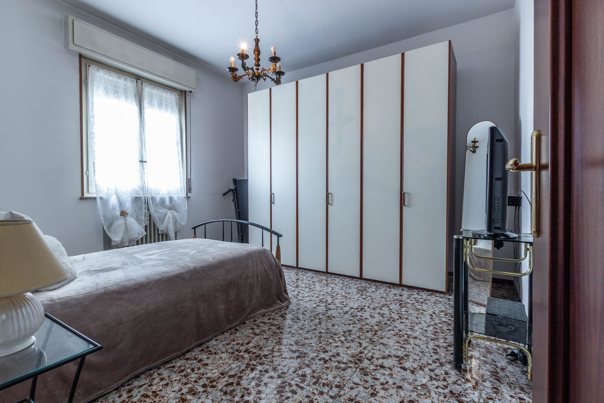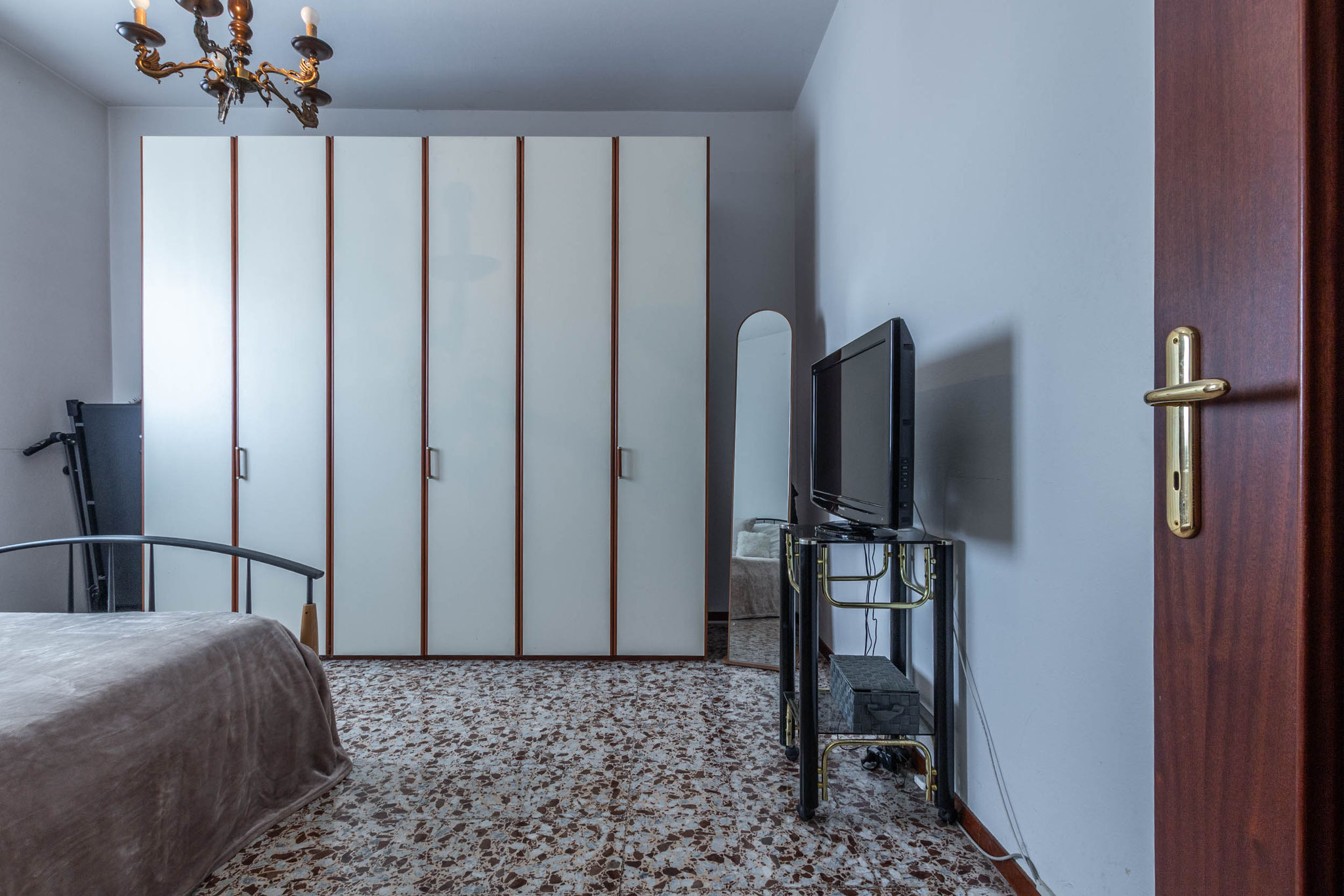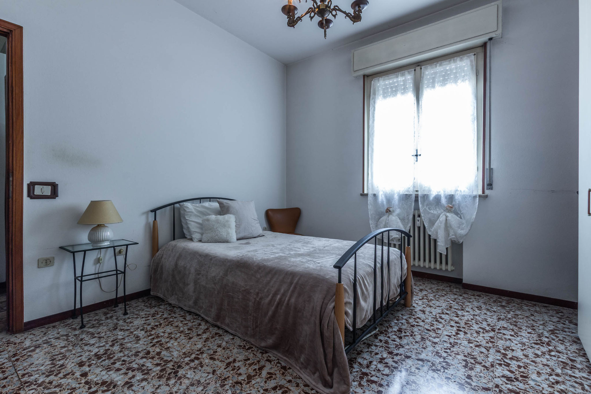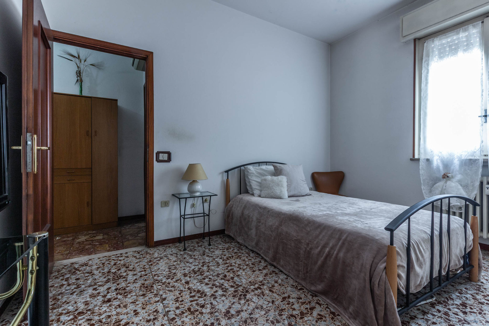 L'appartamento si trova in una palazzina in ordine, al secondo piano senza ascensore. Ha soggiorno con un bel balcone, cucina, tre camere, un bagno, una lavanderia trasformabile in bagno completo, cantina e garage.