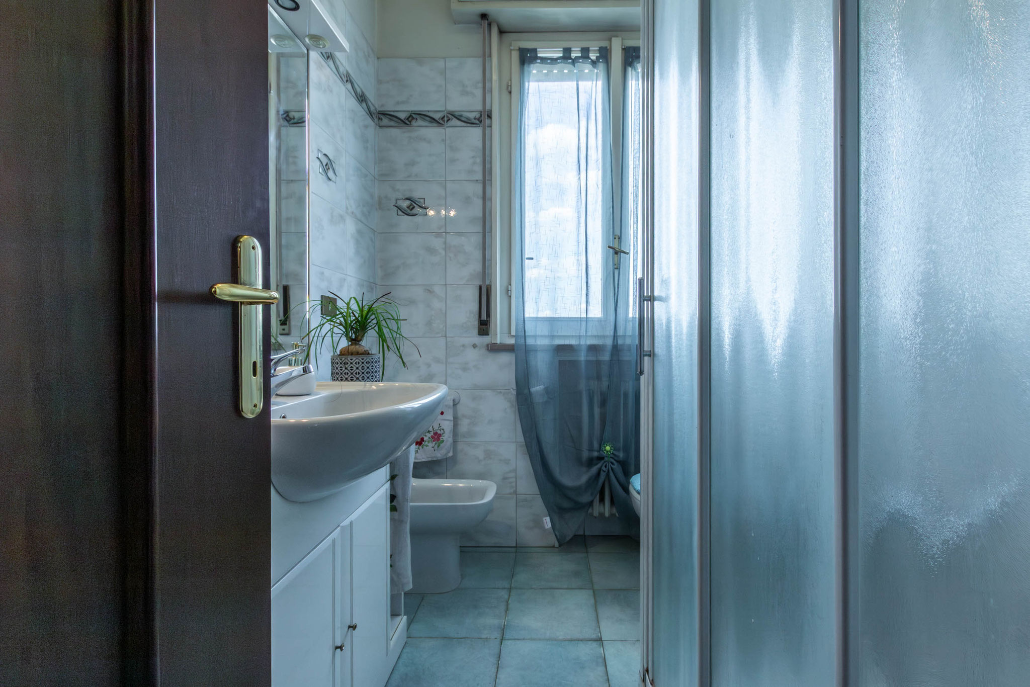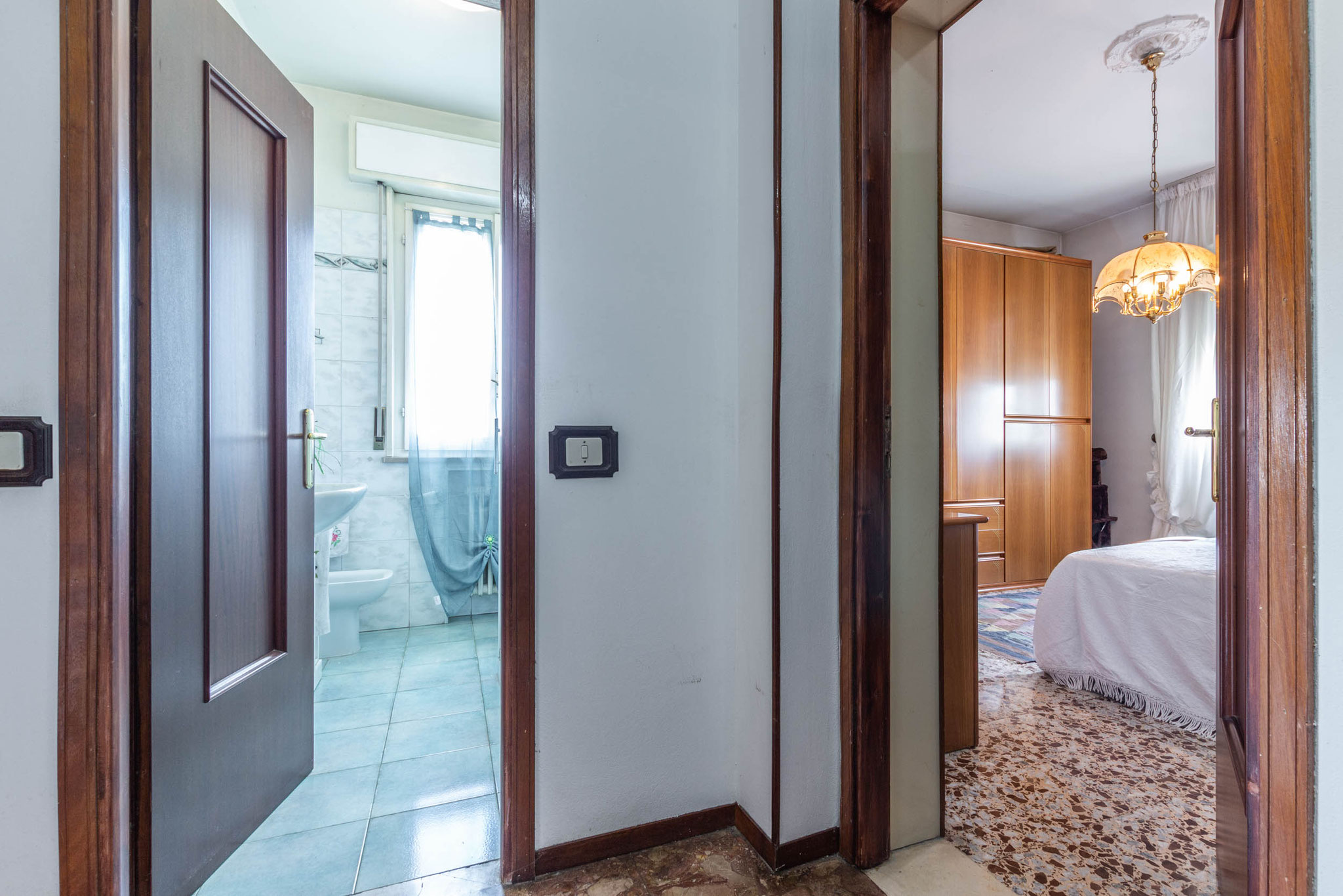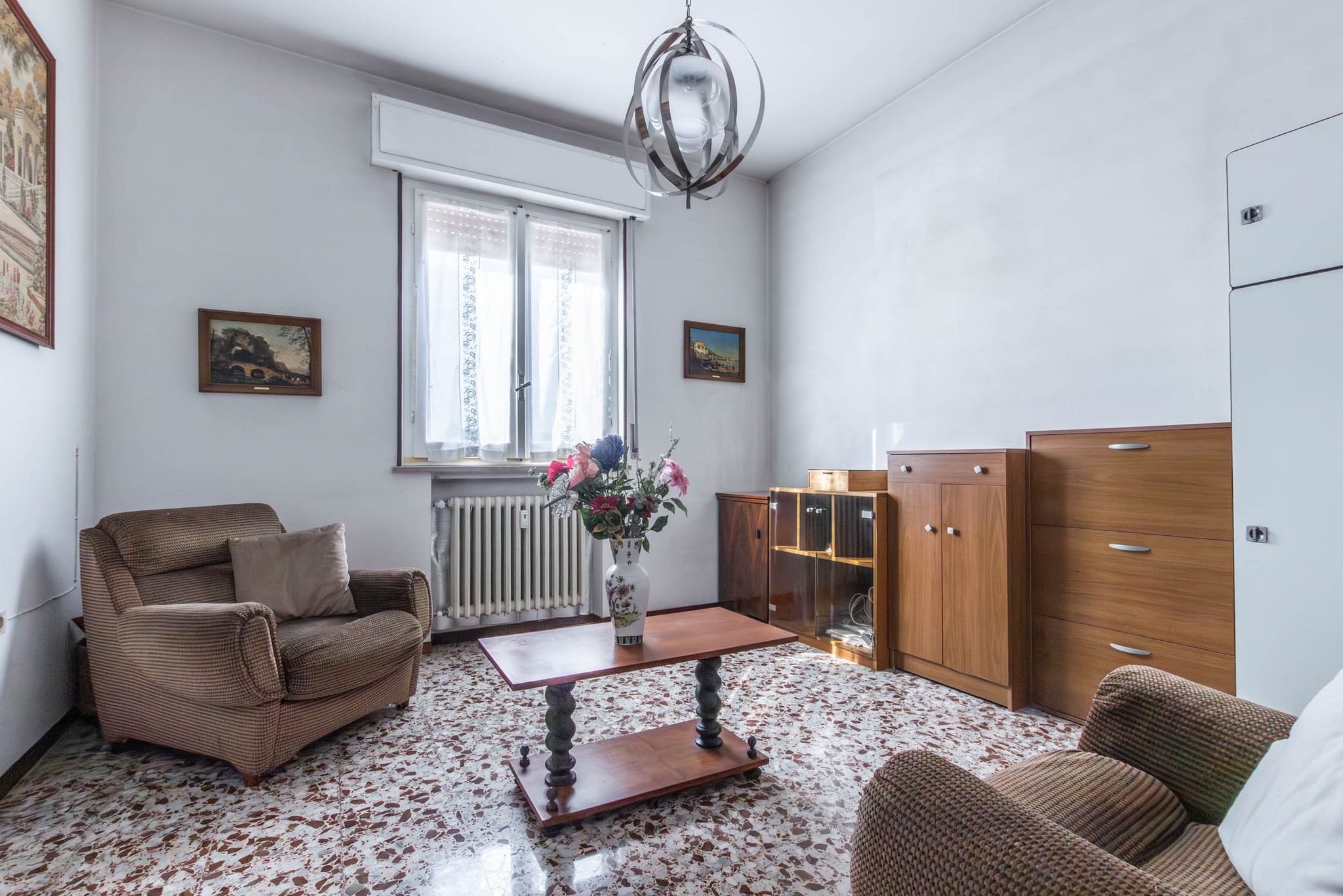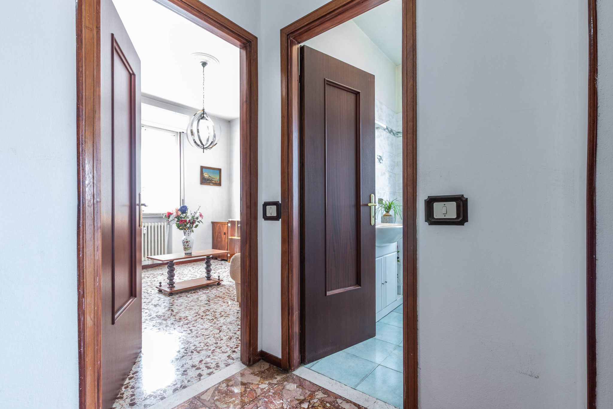 L'appartamento si trova in una palazzina in ordine, al secondo piano senza ascensore. Ha soggiorno con un bel balcone, cucina, tre camere, un bagno, una lavanderia trasformabile in bagno completo, cantina e garage.